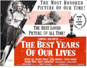 The film “The Best Years of Our Lives,” released in 1947, was an early attempt to show the effects of long-term stress and combat on the psyche of the service member. That movie follows the lives of three men, all from different backgrounds, different branches of service, just back from the war. It may be the first time that a film portrayed, in an understandable way, the condition we now call Post Traumatic Stress Disorder (PTSD). The film was true to life, raw, and touched audiences emotionally. It won seven Oscars, including Best Picture, Best Director (William Wyler), Best Screenplay, and Best Actor (Frederick March).